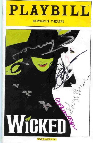 Went to see Wicked at Gershwin Theatre! Definitely give it 2 thumbs up and a wave of the magic wand! I even got my playbill signed by the major cast members! In silver is Shoshana Bean (Ephaba the Wicked Witch), the black squiggle is David Ayers (Fiyero the Scarecrow), the black pen is George Hearn (The Wonderful Wizard of Oz), and the purple marker is Jannifer Laura Thompson (Glinda the Good Witch). |