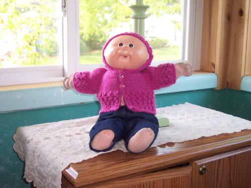 My Cabbage Patch Doll that I've had since I was 4. Karin Anna, in her brand new outfit, hand crocheted by Eva. (Blue990 on Ebay)