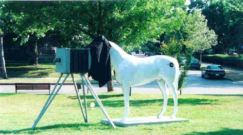 Rochester, NY back in 2000 To increase community spirit, the City had local businesses dress up horses and display them on their front lawn. I think this one was IFO the Ansel Adams Museum... or maybe it was a photography museum that had a collection of his landscapes. |