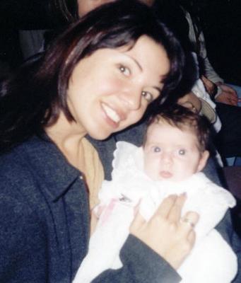 Cris e Andressa, no batizado em julho de 2003