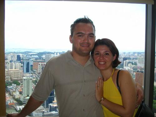 Us at the restaurant at the 70th floor.... Beautiful view of Singapore.