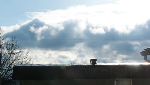 The sun is out and the sky is blue with a few clouds