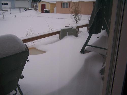 Snow drift on deck.