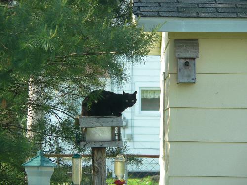 Someones cat trying to get the baby birds