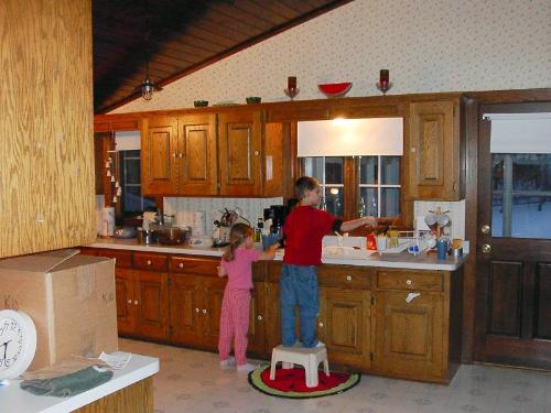 Now turning around and looking the other way we see the kitchen and on the right side of the photo you can see the door to the three seasons room. I am standing in the dinning area taking the photos. All wood work is real wood not laminated. Plus this level has a valuted ceiling. and all the windows face the south for solar heating. |