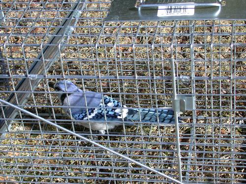 I was wondering were my peanuts were going and no rabbits were being caught. Now I know who the thief is Mr. Bluejay.....