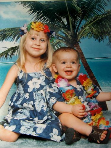 PORTRAIT DAY, GRAND KIDS. Thanks Denis and kathy for the Hawain outfits