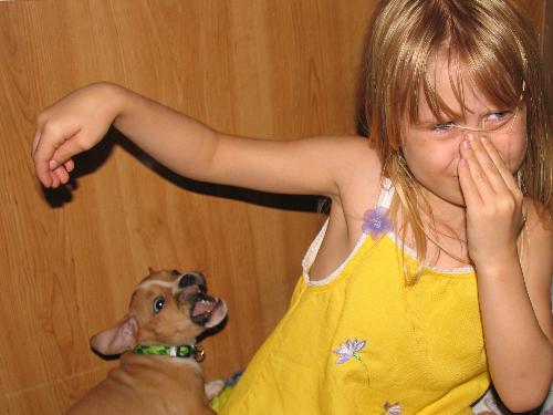 my sons new puppy bit Alana on the nose