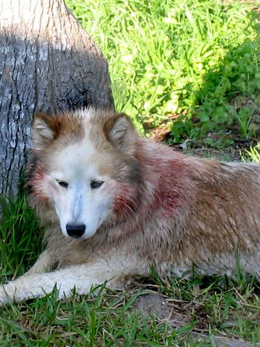 Max after a fight with two stray dogs, the other two are no longer with us, max was not hurt