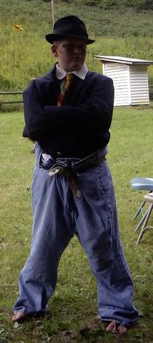 Adam after his race in his hillbillie duds