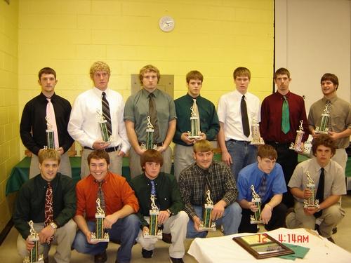 BACK: Josh White - Offensive Back of the year; JR Rollyson - Offensive Back of the Year; Brian Brown - Heart and Hustle; GLEN TANNER- DEFENSIVE BACK OF THE YEAR; Brian Henline - Rookie of the Year; Jeremy Singleton -Rookie of the Year; Zach Flynt - MVP BOTTOM: ANDREW TANNER - OFFENSIVE BACK OF THE YEAR ; CJ Jagielski - Heart and Hustle; Bryson Morlan - Defensive Back of the year; Kenny Hacker- Heart and Hustle; SHANE BELKNAP - SPECIAL TEAMS PLAYER OF THE YEAR; Josh Ratliff - Rookie of the Year |
