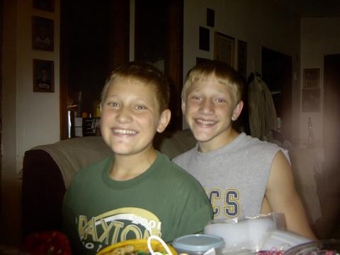 I was taking pictures of Kevin and Adam to list their wonderful qualities and captured a ghost (BEHIND KEVIN) (we believe it is) the preceeding picture, a few seconds before, doesn't show this. WOW! |