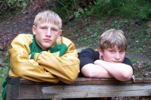 Kevin and Adam wet and tired after exploring the waterfall cove.
