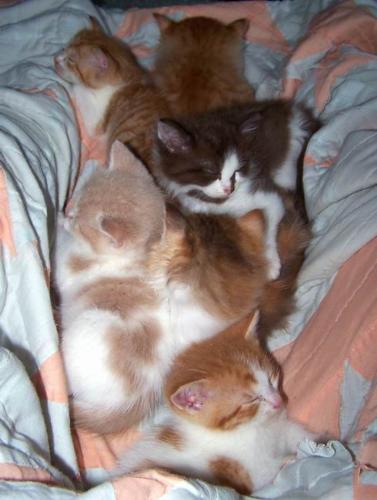 6 little kitties sleeping in my lap.