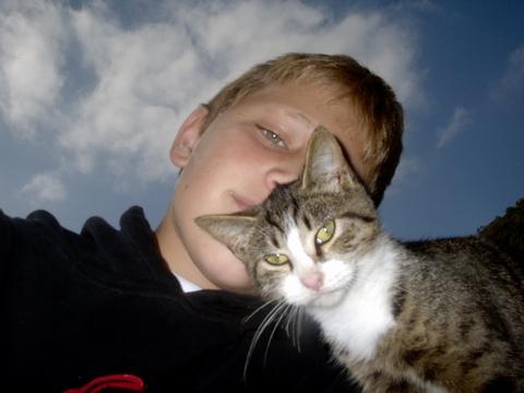 Adam's self portrait and his cat Freedom.