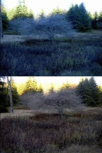 Tree in Cranberry Glades. Neither shot has been altered and taken only seconds apart. I just couldn't choose between the two. Adam said it reminded him of the tree in The Lion King. |