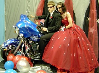 Lindsey and Glen with Attitude on Harley at GBC before Prom