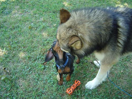 Pluto (mini dachshund)& Rasputin (Alaskan Malamute)