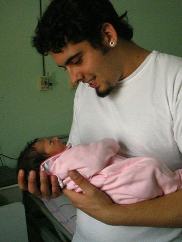 Esse aí babando em cima de mim é o papai Marcel, todo feliz com a filhinha no colo!