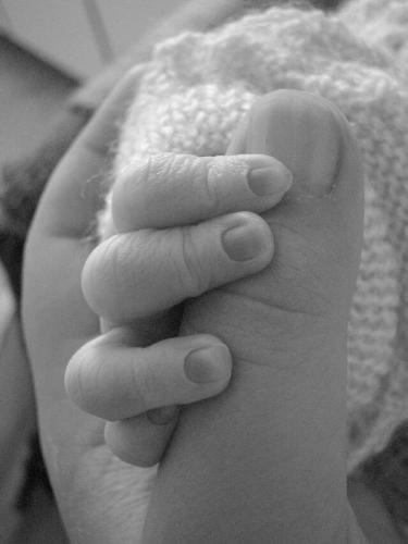 Minha mãozinha segurando o dedinho da mamãe...