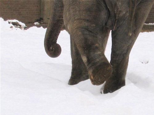 3.03.2005 " The big Lady was extremely careful in the snow.. Step by step she is going back to home " " La gran Dama anduvo con muchísimo cuidado en la nieve..pasito a pasito se volvió a casa. No se fió de lo blanco.." Zoo Artis Magistra, Amsterdam, Nederland