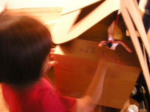 iven drawing "magnets" on top of the cardboard "frigerator".