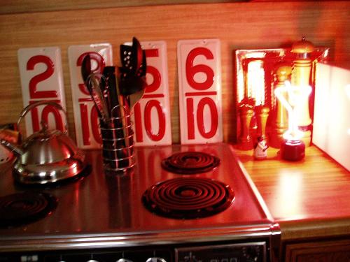More kitchen, extended view. Yes, I know, I hate elec. burners too - fortunately I don't cook much.