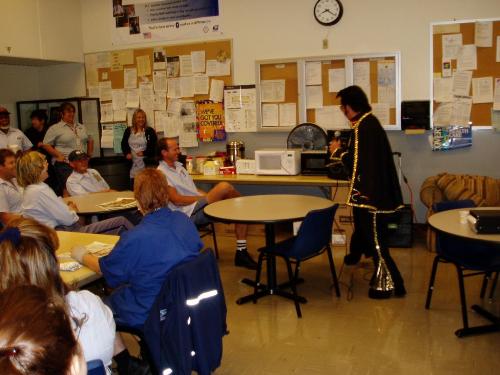 My good friend, Ray, (seated center) is a huge Elvis fan - so I hired E to perform 3 numbers this morning for Ray's b'day...a BIG surprise!!