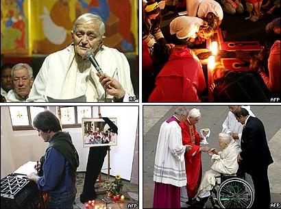 Taize unites members of several Christian denominations from some 30 countries and attracts tens of thousands of young people each year for prayers and meditation. ... Pope Benedict XVI, due to travel to Cologne on Thursday for World Youth Day, said he was particularly dismayed at news of Brother Roger's death as he had received "a moving letter from him" only this week.