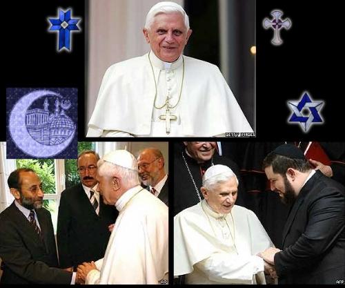 Pope Benedict XVI in Germany visits with Muslim leaders, left and rabbis, right.
