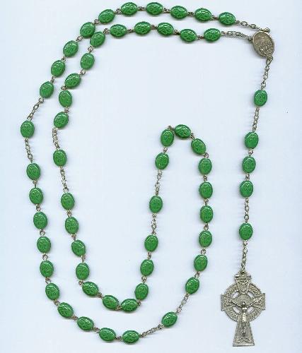 "Our Lady of Knock" rosary hand made in Ireland probably pewter with glass beads