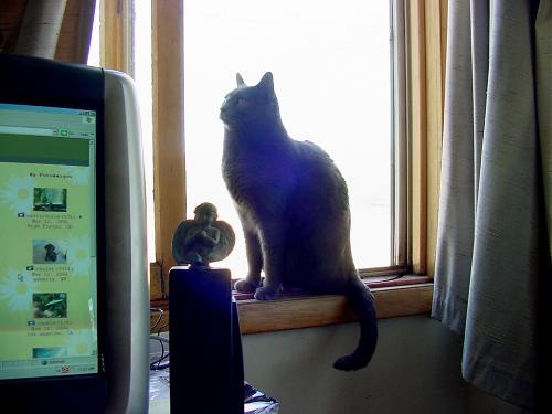 Jesse in the front window this afternoon, near the PC's