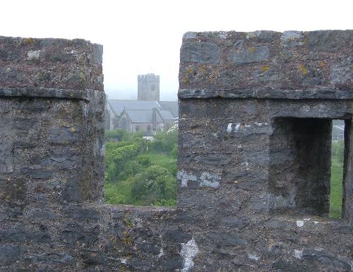 protected by a castle wall,or,in the distance protected by God!