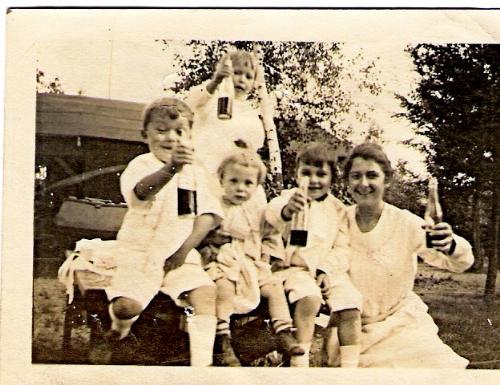 My father's family with his aunt. My father's on the far left. It's about 1918. They're drinking Coke?!?