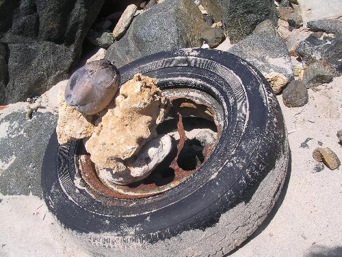 This is an intentional sculpture. I found it at Aruba's "natural bridge" - where it seems people pile rocks into formations when they visit.