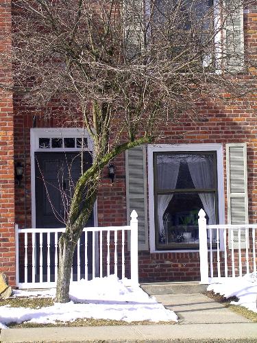 My "humble abode" (aka condo) The tree out front blooms with beautiful pink flowers - it seems like for only a week or two - in the Spring. It starts dropping its leaves in the end of July. For the rest of year it's bare. Some people have told me it's a Hawthorn and that's just the way they are. |