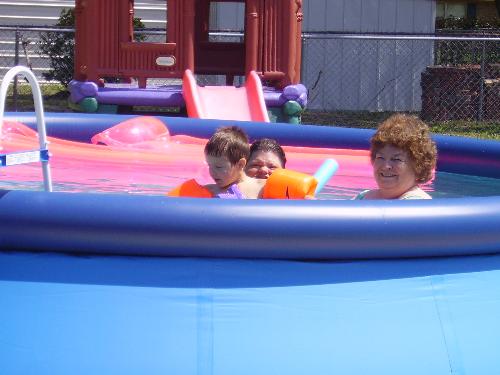 Me, Ginnie, & Cameron in the pool at my sisters.