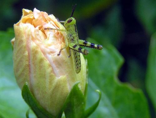 Small grasshopper but big damage. I grow flowers for the grasshoppers and they love me for it. I'm learning forgiveness.