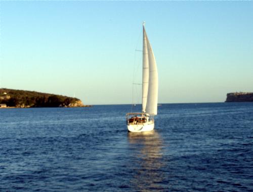 Turn left and head out East through the Sydney Harbour heads at sunset.