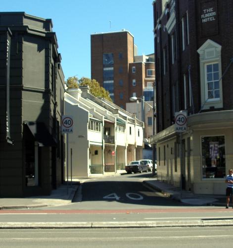 Some of the original houses of Sydney up a side street at Taylor's Square.