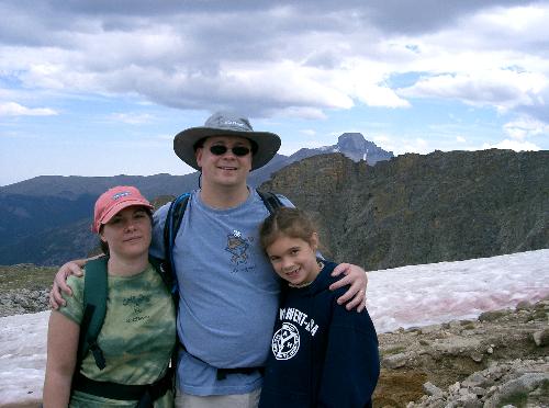 A little tired at the top of Flattop Mountain. We hiked 4.5 miles uphill, then back down for a total of 9 miles.