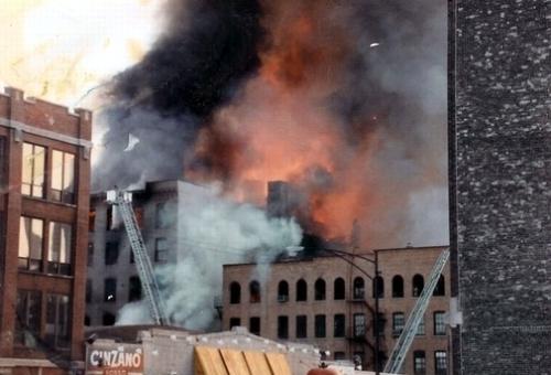Near north-side of Chicago. About 10 years ago. This fire on Huron Street just west of Orleans. The fire consumed around 4 or 5 of these old factory buildings. That would be bad enough, but they were now art galleries and the fire lost was over 200 million dollars in art alone. The word was the insurance companies paid the company that appraised the lost 10% of the value of the settlement. I was at the fire house that day and manage to take this. My real concern was that the fire started in a gallery that VS Electric the company I owned at the time had just completed a large job. Hundreds of feet of track lights, outlets, switches and electric panels. Lucky for me it was the floor people who started it with propane torches while trying to remove old glue or what ever on the floor. |