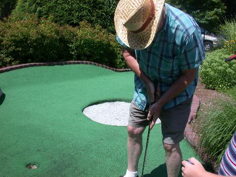 Paul putting for the lead at one of the toughest miniature golf courses in the country.