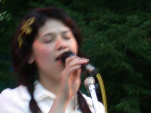 I don't know this woman's name, but she has a strong voice and sings with some local bands. I took this photo for a friend who thought she was a cutie and loves her voice. And I kind of got busted... |