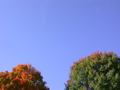Trees in my backyard threee minutes ago. (from time of post that is) It's a beautiful blue sky day here, if a bit brisk.