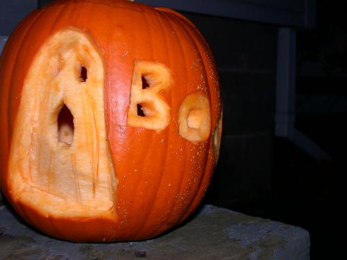 Jack-O-Lantern with flash. I'm full of candy, like a little kid. I might toss my cookies but I've decided not to stop eating candy tonight until I feel really ill, just to feel what candy sickness is like, so I can write a book about it, sell the film rights, and have plenty of cash to buy more candy... |