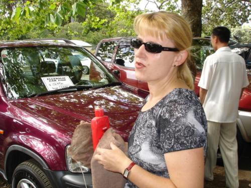 Lady trying to sell her 4wd, to my friend Mike,at the car fair.