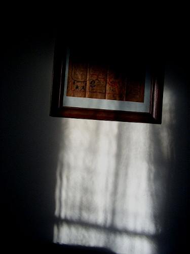Sun through a lace curtain.