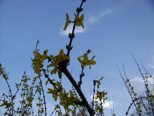Yellow against the late day sky.