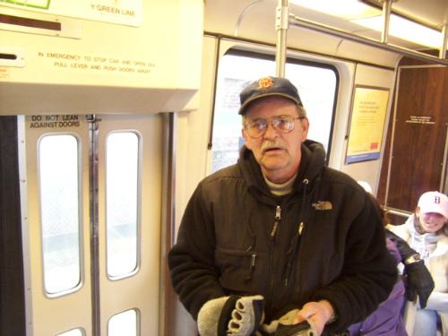 On the train to Fenway Park.